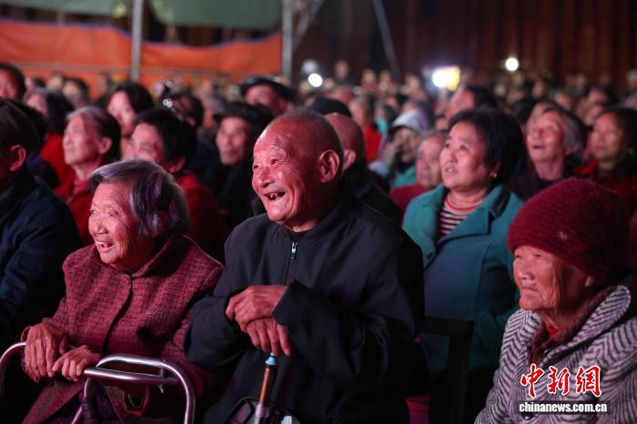 图为村平易近正在家门心观赣剧表演。中新社记者 刘占昆 摄